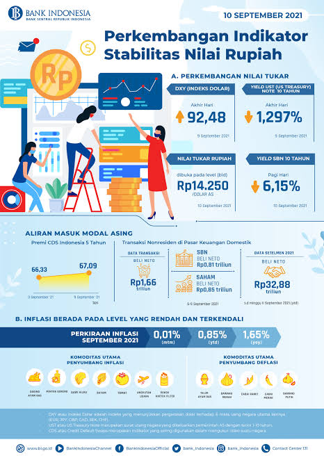 JAKARTA–MARITIM: Mencermati pemulihan ekonomi nasional yang sedang berlangsung, Bank Indonesia menyampaikan perkembangan indikator stabilitas nilai Rupiah secara periodik. Indikator dimaksud adalah nilai tukar dan inflasi, sebagai berikut: