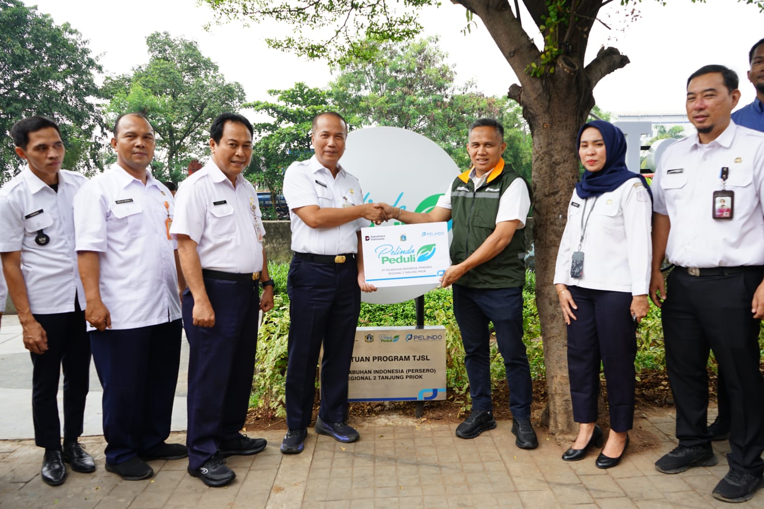 JAKARTA, MARITIM : PT Pelindo Regional 2 Tanjung Priok menyerahkan bantuan untuk Taman Pelindo Peduli kepada Dinas Pertamanan dan Hutan Kota Administrasi Jakarta Utara. Penyerahan dilaksanakan di Halte Arta Gading Jakarta Utara,