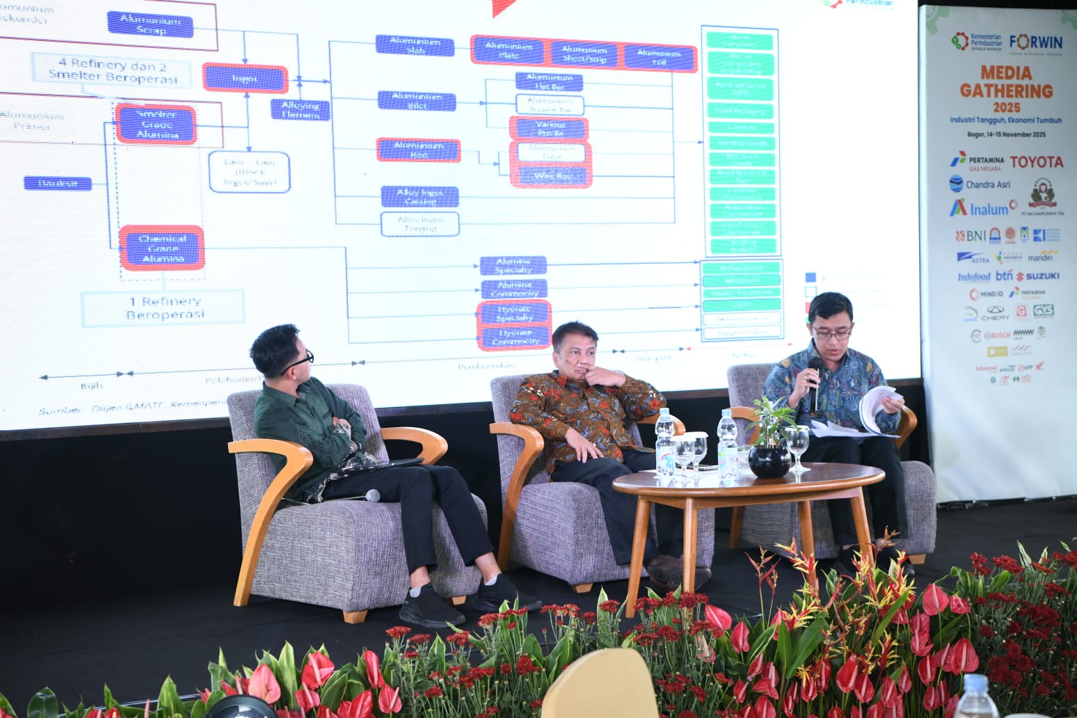 Arif menjelaskan bahwa industri aluminium berjalan melalui rantai produksi yang sangat terintegrasi. Untuk menghasilkan 1 ton aluminium, dibutuhkan sekitar 6 ton bauksit untuk diolah menjadi 2 ton alumina, sebelum melalui proses elektrolisis di smelter. Tahapan ini membuat investasi hulu dan hilir harus berjalan paralel dan terencana.